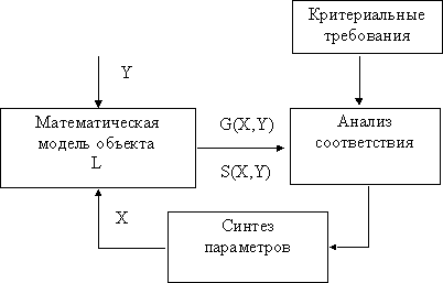 Математическая модель является математическим аналогом проектируемого объекта. Степень адекватности ее объекту определяется постановкой и корректностью решений задачи проектирования. Множество варьируемых параметров (переменных) X образует пространство варьируемых параметров R>x> (пространство поиска), которое является метрическим с размерностью n, равной числу варьируемых параметров. Множество независимых переменных Y образуют метрическое пространство входных данных R>y>. В том случае, когда каждый компонент пространства R>y> задается диапазоном возможных значений, множество независимых переменных отображается некоторым ограниченным подпространством пространства R>y>. Множество независимых переменных Y определяет среду функционирования объекта, т.е. внешние условия, в которых будет работать проектируемый объект.