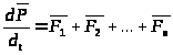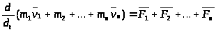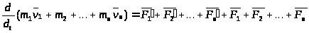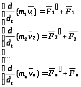 Рассмотрим механическую систему, состоящую из n тел, масса и скорость которых соответственно равны m1, m2,..., mn и v1, v2,...,vn. Пусть F1, F2,..., Fn –равнодействующие внутренних сил, действующих на каждое из этих тел, а F1, F2,..., Fn –равнодействующие внешних сил. Запишем второй закон Ньютона для каждого из n тел механической системы: