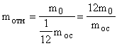Относительной массой молекулы m>отн> называется величина, равная отношению абсолютной массы молекулы m>0> к 1/12 массы атома углерода m>oc>.