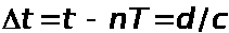 Однако расстояние между Юпитером и Землей меняется. Поэтому свет, отраженный от спутника Юпитера, проходит до Земли большее расстояние в конце наблюдений, чем в начале. Дополнительный путь, проходимый светом, очевидно, приближенно равен диаметру земной орбиты d. Поэтому на Земле окончание n-го затмения будет зарегистрировано в момент t’, спустя промежуток времени t = d/c после момента t, рассчитанного по формуле (1). Таким образом,