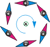 Тангенс–гальванометр, используемый в данной работе, состоит из катушки, в центре которой на вертикальной оси располагается магнитная стрелка. Стрелка может свободно вращаться внутри круглой коробки с прозрачной крышкой (компас). По контору дна коробки намечена круговая шкала, проградуированная в угловых градусах.