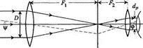 Здесь = F>1>/F>2> – угловое увеличение телескопа. Отношение D/ имеет смысл диаметра пучка, выходящего из окуляра. Знак равенства в (4.10) соответствует случаю нормального величения.