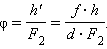 Как следует из рис. 3.5.2, угол зрения φ предмета, рассматриваемого через окуляр в приближении малых углов,