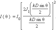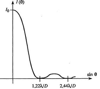 При оценке разрешающей способности оптических инструментов важно знать размер центрального дифракционного максимума. Угловой радиус пятна Эйри выражается соотношением