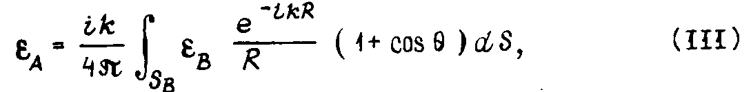 где Eb - поле в точке B на поверхности Sb; k- волновое число ; R - расстояние между точками А и В ; Q - угол между линией, соединяющей точки А и В , и нормалью к поверхности Sb