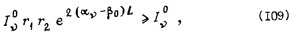 где L - длина рабочей активной среды; r1 и r2 - коэффициенты отражения зеркал 1 и 2 ; >> - коэффициент усиления активной среды; >0> - постоянная затухания, учитывающая потери энергии в рабочем веществе в результате рассеяния на неоднородностях и дефектах.