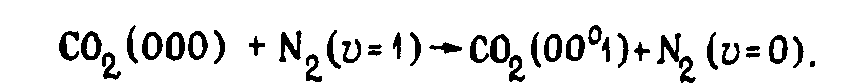 Возбуждение верхнего рабочего уровня (00°1) обусловлено несколькими процессами. Основной процесс возбуждения связан с неупругими соударениями молекул N^ с СО^ , что ведет к резонансной передаче колебательной энергии от молекул азота к молекулам углекислого газа: