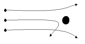 И в правду, это не вероятно, дело в том, что проводя этот опыт на меньших углах, то а - частица обязательно отскочит в сторону, подобно тому как камушек несколько десятков граммов при столкновении с автомобилем не в состоянии заметно изменить его скорость (рис. 5). Так как их масса примерно в 8000 раз больше массы электрона, а положительный заряд равен по модулю удвоенному заряду электрона. Это не что иное, как полностью ионизированные атомы гелия. Скорость α – частиц очень велика: она составляет 1/>15> скорости света. Следовательно, электроны вследствие своей малой массы не могут заметно изменить траекторию α – частицы.