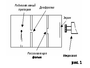 При хорошем вакууме внутри прибора в отсутствие фольги на экране возникала полоска света, состоящая из сцинтилляций, вызванных тонким пучком α – частиц. Но когда на пути пучка помещалась фольга, α – частицы из-за рассеяния распределялись на большей площади экрана.
