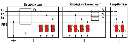 разделение цепей заземления и нуля (переход с системы TN-C на системы TN-S и TN-C-S);