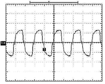 Импульс на нагрузке, защищенной ТУЗ (амплитуда снижена до15 В) |