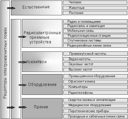 Рис.1.2 Классификация рецепторов электромагнитных помех.