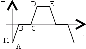 AB – процесс нагревания Q>1>=mc>л>(T-T>1>); BC – плавление Q>2>=λm; CD – нагревание Q>3>=mc>H>>2>>O>(T>2>-T>o>); DE – парообразование Q>2>=μm