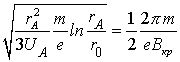 При выполнении условия В = В>кр> время пролета электрона от катода к аноду, определеляемое формулой (19), равно полупериоду вращения электрона по окружности. Период определяется по формуле (7). Таким образом: