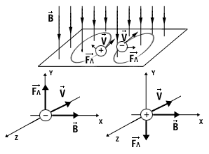 Сила Лоренца, как следует из (2), направлена различно для положительных и отрицательных зарядов, движущихся в одном направлении.