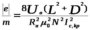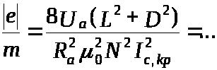 где U>a>— анодное напряжение, L — длина соленоида, D — диаметр соленоида, N — число витков соленоида, R>a>> >— радиус анода, >>— магнитная постоянная, I>c>>,кр >— критический ток соленоида.