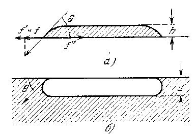 Для разрыва, или, как говорят, для раздела поверхности необходимо приложить внешние силы, параллельные к поверхности и перпендикулярные к той линии, вдоль которой предполагается разрыв (раздел).