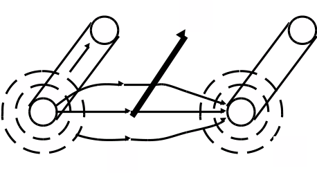 Конечная скорость всех волновых процессов. В случае ЭМВ - это скорость света.