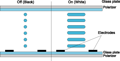 Различие по отношению к обычным ЖК-дисплеям (TN или TN+Film) состоит в том, что молекулы жидких кристаллов выравниваются параллельно подложке.