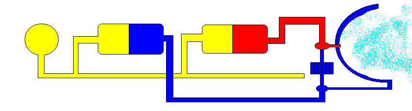 Горючее и кислород смешиваются—воспламеняются в камере сгорания – откуда газы через реактивное сопло выбрасываются наружу.
