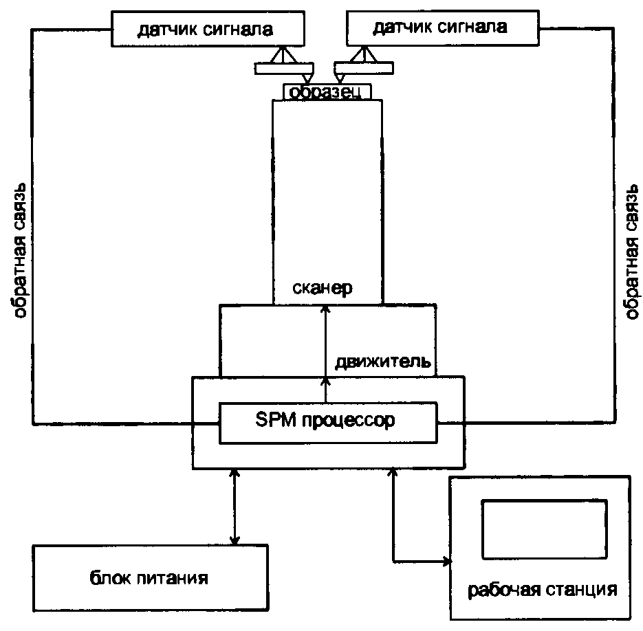 На (Рис.10) схематично изображены составляющие компоненты присущие СЗМ;
