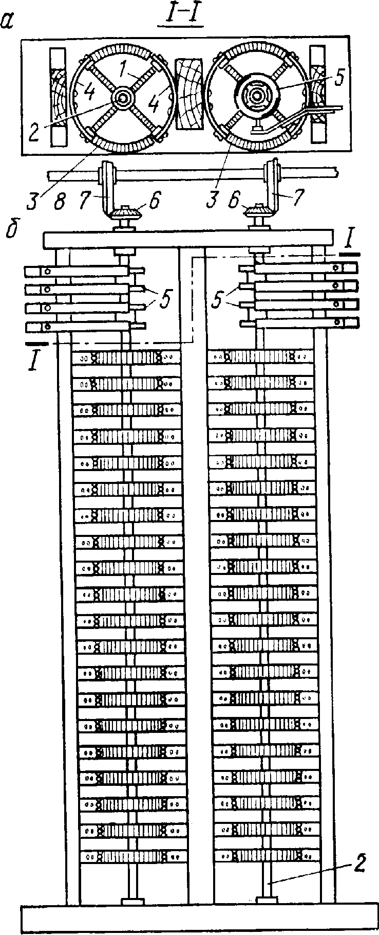 Т. Девенпортом, располагать неподвижные и вращающиеся электромагниты в одной плоскости на вертикально установленном валу высотой 1,2 м (рис. 4). Это увеличивало размеры двигателя в вертикальном направлении, и в то же время сокращало занимаемую им площадь. Она была равна 0,7 м2, т. е. 0,9 м в длину и 0,77 м в ширину.