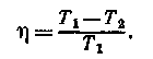 Большой научный и технический опыт по устройству тепловых двигателей и глубокие теоретические исследования, касающиеся условий работы тепловых двигателей, установили, что к. п. д. теплового двигателя зависит от разности температур нагревателя и холодильника. Чем больше эта разность, тем больший к. п. д. может иметь паросиловая установка (конечно, при условии устранения всех технических несовершенств конструкции, о которых упоминалось выше). Но если разность эта невелика, то даже самая совершенная в техническом смысле машина не может дать значительного к. п. д. Теоретический расчет показывает, что если термодинамическая температура нагревателя равна Т>1>, а холодильника Т>2>, то к. п. д. не может быть больше чем