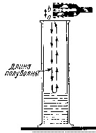 Поднесем вибрирующий камертон к высокому стеклянному цилиндрическому сосуду (рис.7). Будем теперь понемногу наливать воду в сосуд; через некоторое время мы услышим сильный звук. Если продолжать наливать воду, то звук прекратится.