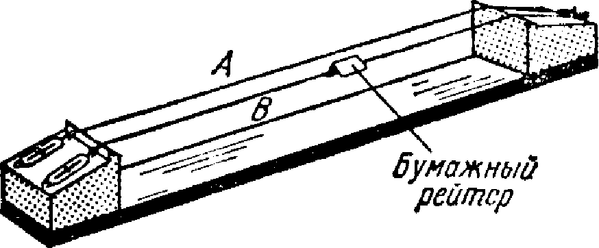 Резонансные колебания можно продемонстрировать также при помощи сонометра (рис. 6), на который натянуты две струны так, что частоты их одинаковы. Если возбудить щипком струну A, то рейтер па струне В подскакивает. Почему? Почему иногда во время грозы дрожат стекла в окнах?