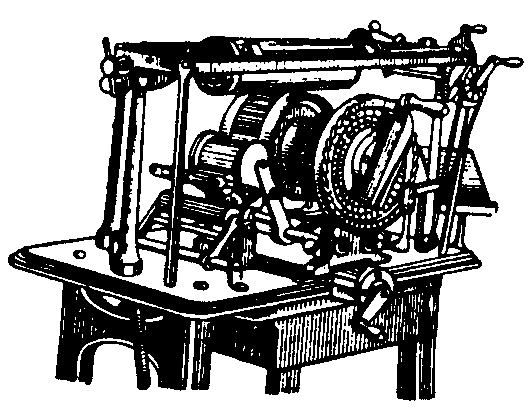Только в XVIII веке был построен металлический пресс с усовершенствованным механизмом для прижима бумаги к форме, а в 1863 г. У. Буллоном (США) была сконструирована первая ротационная печатная машина, печатающая на "бесконечной" ленте. Спустя три года его соотечественником К. Шеллсом собрана первая пишущая машинка, получившая название "ремингтон". В России первая оригинальная полиграфическая машинка была предложена в 1870 г. М.И. Алисовым (рис. 1.2, а). А в 1889 г. Вагнер (США) сконструировал печатающую машинку с открытым шрифтом, т. е. при печати на такой машинке был виден набираемый текст (рис. 1.2, б). Эта машинка и явилась прототипом большинства современных электрических пишущих машинок.