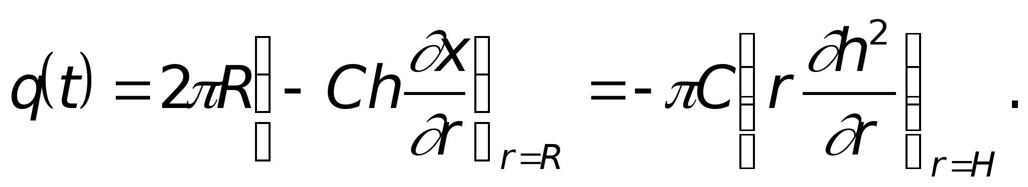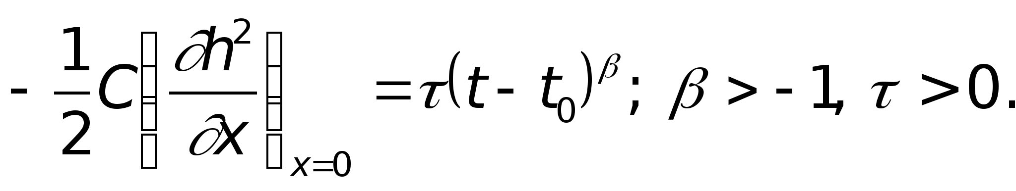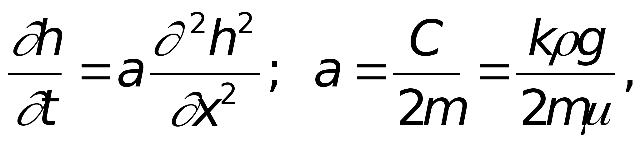 Напор и объемный поток (расход) грунтовых вод должны быть непрерывными функциями x и t. Используя закон Дарси, имеем для расхода, приходящего на единицу ширины пласта, выражение