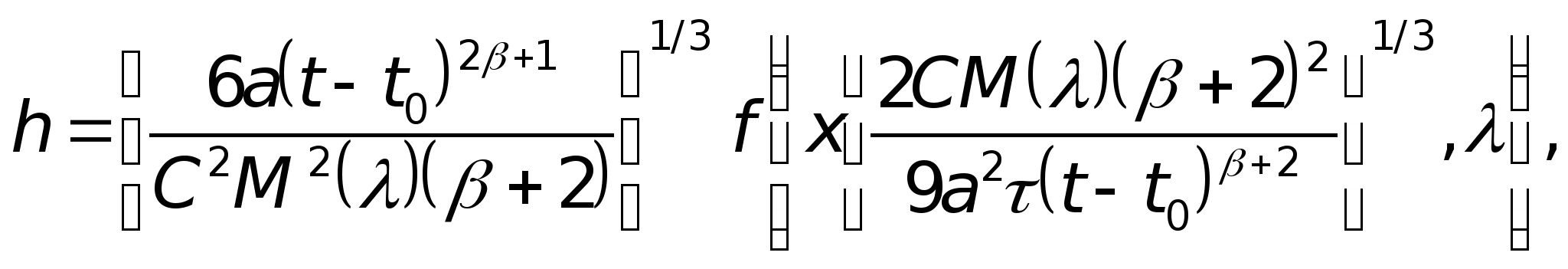 Таким образом, сдвиг во времени влияет лишь на некоторое преобразование величины h>0>, и постановка задачи оказывается по отношению к группе преобразований переноса по времени; для определения h в переменных х, t, , , h>0 >получается та же задача, что и для определения h в переменных (75). Стало быть, на основе соотношений (76) и (77) имеем