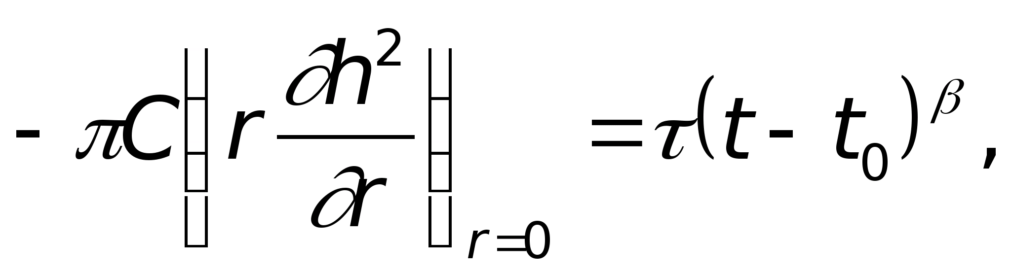 По предположению, радиус скважины пренебрежимо мал (ниже мы остановимся на причинах, по которым это допущение можно делать для большинства реальных движений), поэтому можно принять R = 0; так как расход жидкости, закачиваемой в скважину, меняется по степенному закону, граничное, условие на скважине принимает вид: