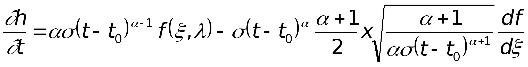 где м () =-df2(0, )/d , а координата переднего фронта жидкости х>0 >(t) - в виде: