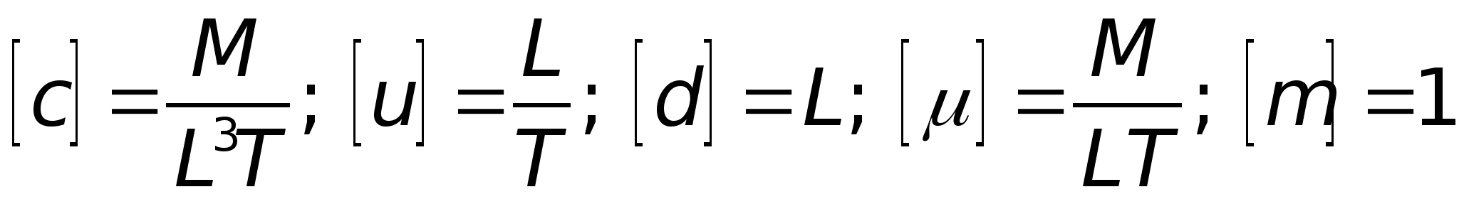 Рассмотрим сначала такие фильтрационные движения, для которых несущественны силы инерции. К числу подобных безынерционных движений принадлежит, в силу их крайней медленности, большинство фильтрационных движений, встречающихся на практике. При этом плотность р, характеризующая инерционные свойства жидкости, несущественна и исключается из числа определяющих параметров. Таким образом, при безынерционных движениях величина c зависит только от u, d, m и . Выпишем размерности интересующих нас величин: