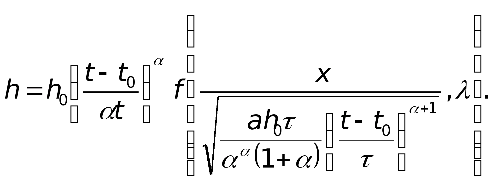 где h>0> - константа размерности напора; - константа размерности времени, причем, очевидно, эти константы выбираются с точностью до некоторого постоянного множителя. Решение (66) принимает вид