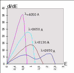 Но фотоэлектрическое поглощение возможно для электронов связанных в атоме или кристале . В частности , связью для свободных электронов металла служит их взаимодействие с периодическим полем внутри кристалла и с полем в поверхностном слое , т.е. с поверхностным потенциальным барьером. Соответственно этим двум видам связи фотоэлектронная эмиссия разделяется на поверхностную , возниккающую в граничном слое толщиной порядка 10 -7см, и объемную , возникающую внутри решотки кристалла.Расчет показал, что фотоэлектронной эмиссии металла главную роль играет поверхностная компонента , несмотря на то , что с поверхностном слое поглащается только очень небольшая доля энергии подуюшего света .Что же касается объемной компоненты эмиссии, то она делается заметной только при частотах, много больших граничной . Экспериментальное подтверждение этого результата теории можно видеть в опытах по определению глубины зарождения фотоэлектронов . Если измерять фототок с пленок металла различной толщины (толщина пленки увеличивается путем осаждения на нее новых слоев металла ) , то оказывается , что, начиная с толщины в 10-15 атомных слоев , как фототок , так и распределение скоростей фотоэлектронов перестают зависеть от толщины пленки , оставаясь такими же , как для массивного металла . В то же время свет проникает в металл гораздо глубже , так как пленки толщиной даже в 100 атомных слоев еще проницаемы для света . Это доказывает , что подавляющее большинство фотоэлектронов зараждается в поверхностном слое металла . Теория Тамма - Шубина - Митчелла позволяет вычислить фотоэлектронный ток , найти его зависимость от поляризации и определить вид спектральной характеристики , а также распределение скоростей фотоэлектронов . Качественное совпадение с экспериментом во всех отношениях получается хорошее , и в некоторых случаях можно говарить даже о количественном соответствии теории и эксперимента .Следует отметить,что оптические свойства металлов недостаточно изучены и это припятствует получению хороших количественных результатов.