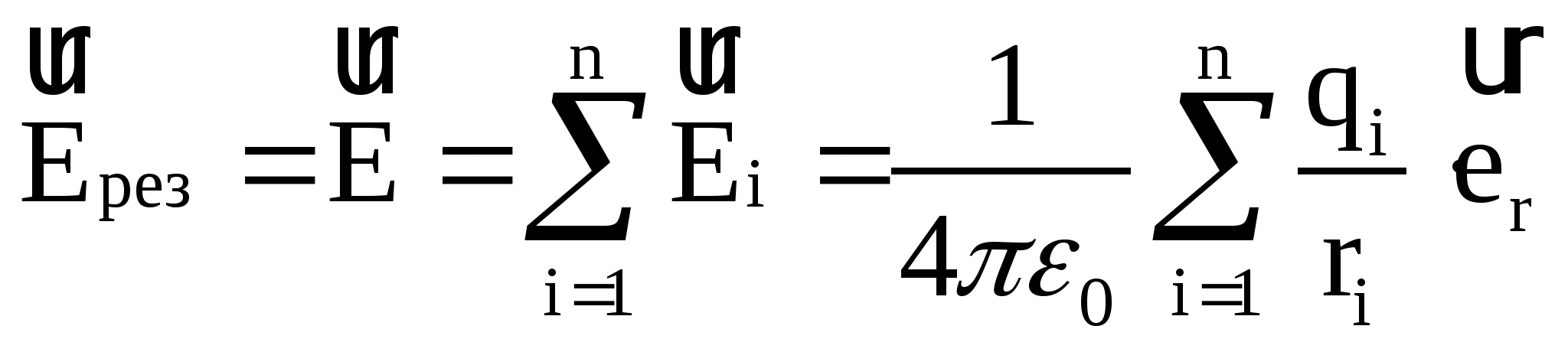 Принцип суперпозиции: напряжённость результирующего поля находится путём определения геометрической суммы простых полей.