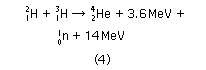 выделяя приблизительно 17.6 Мэв. Энергия появляется сначала, как кинетическая энергия гелия-4 и нейтрона, но скоро проявляется в виде высокой температуры в окружающих материалах и газе.