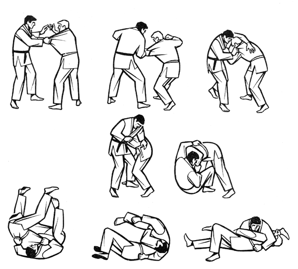 Рис 5 Нагэ Вадза - сегодня мы представляем технику стоящую особняком и относящуюся к особому разделу нагэ вадза - Кинси Вадза - Кани Басами - ножницы , а также Куби Нагэ - бросок через бедро с захватом шеи.