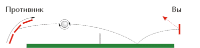 * Возврат шарика, при котором он касается сетки, но приземляется на противоположную сторону засчитывается;