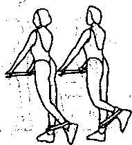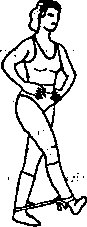 Стоя, кольцо из эластичного бинта на щиколотках. Слегка согнув левое колено, заведите ногу назад, подняв носок на 15 см над полом. Кольцо слегка натянуто, руки на опоре. Поднимите левую пятку, пока колено не будет под углом 90°. Вернитесь в исходное положение. То же другой ногой. |