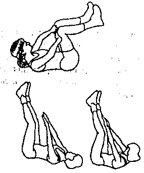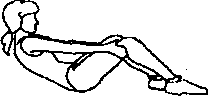 Лежа на спине приподнять согнутые в коленях ноги и голову. Ладони на коленях с усилием давят на них, так чтобы ногам приходилось преодолевать сопротивление. Лежа на спине, ноги вверх слегка согнуты в коленях. Вытянуть руки вперед по направлению к носкам. Поясницу прижмите к полу. |