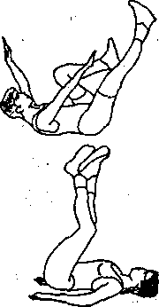 Варианты: 1. Нога сверху согнута впереди, носком упирается в пол. Ногу снизу поднимите на 10-15 см и опустите или поднимите и сделайте пружинистые покачивания. 2. Исходное положение то же, ногу снизу поднять на 10-15 см, отвести вперед, вернуться назад и опустить на пол. 3. Исходное положение то же, ногу поднять, отвести назад, вернуться и опустить на пол. |