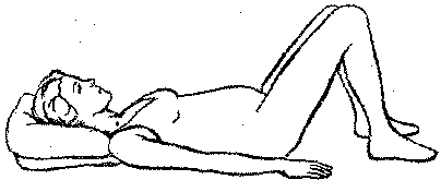 Лежать на спине, колени согнуты под углом 30 см, стопы плоско положены на пол. Голова и плечи лежат на подушке, руки - вдоль тела. Основой упражнения Кегля является напряжение мышц в области заднего прохода и влагалища и удержание такого положения как можно дольше (8-10 секунд). Затем - медленное расслабление мышц и отдых. Это упражнение можно (а после четвертого месяца - необходимо) выполнять в стоячей или сидячей позиции, или во время мочеиспускания. Упражнение следует повторить не менее 25 раз в течении дня, в разное время. Внимание! Исходная позиция может применяться до четвертого месяца включительно. Потом такое положение не рекомендуется, учитывая неблагоприятное влияние давления матки на большие кровеносные сосуды.