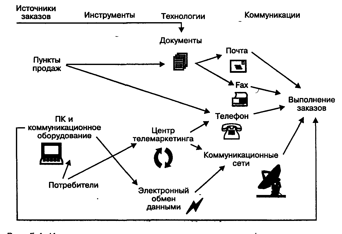 Прием и предварительная обработка заказов. – Менеджмент заказов получает все заказы потребителей из различных потоков, включая пункты розничной торговли, электронные телекоммуникационные сети и системы, заказы на основе теле маркетинга и других источников, используемых фирмой.