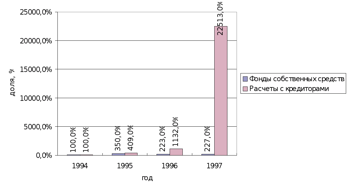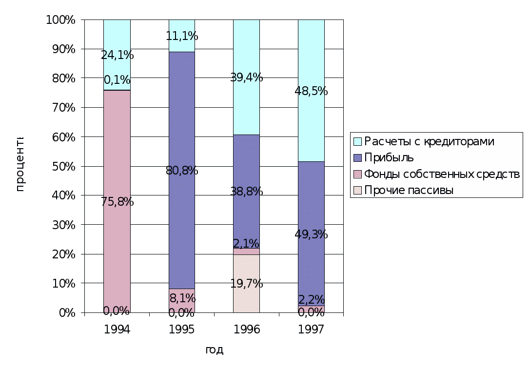 В 1997 году увеличилась прибыль по сравнению с 1994, 1995 годами. Стабилизируются потоки денежных средств. Их структура становится более рациональной .