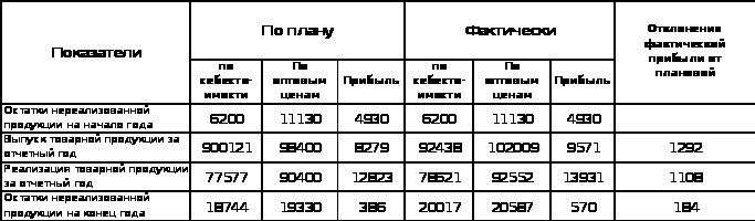 Анализ прибыли от реализации продукции начинают проверкой баланса товарной продукции и общей оценкой меры влияния на выполнение плана прибыли изменений прибыли в остатках нереализованной продукции на конец и начало года, который дает возможность обнаружить меру влияния на прибыль от реализации товарной продукции изменений в выполнении плана по выпуску продукции и по остаткам нереализованной продукции. Такую проверку проводят на основании использования данных форм годовой отчетности № 1, 2, 5 в соответствии с которыми баланс товарной продукции составляется в оптовых ценах и по себестоимости по форме, которая приведенная в таблице 2.