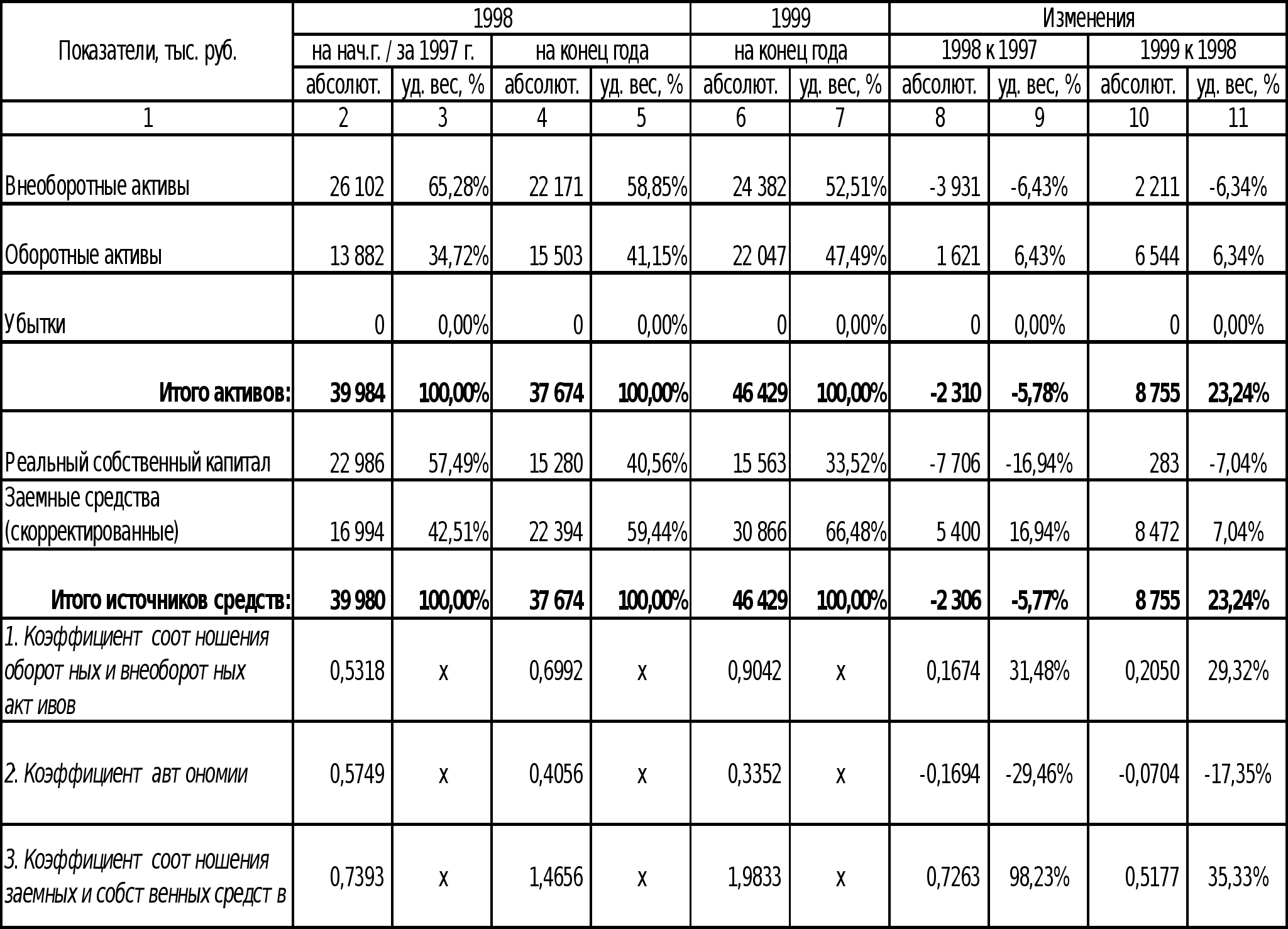 | Показатели, тыс. руб. | 1998 | 1999 | Изменения | |||||||