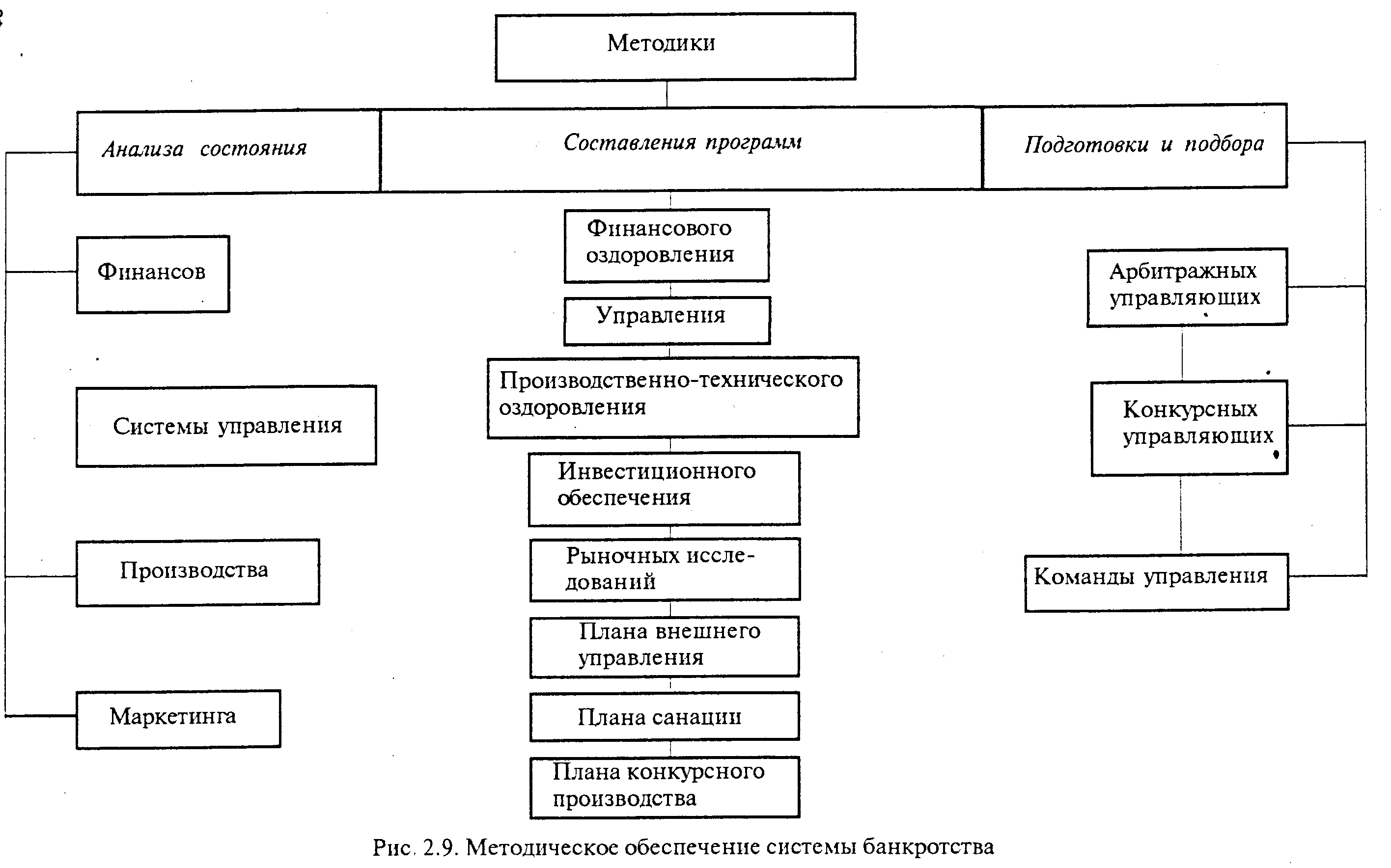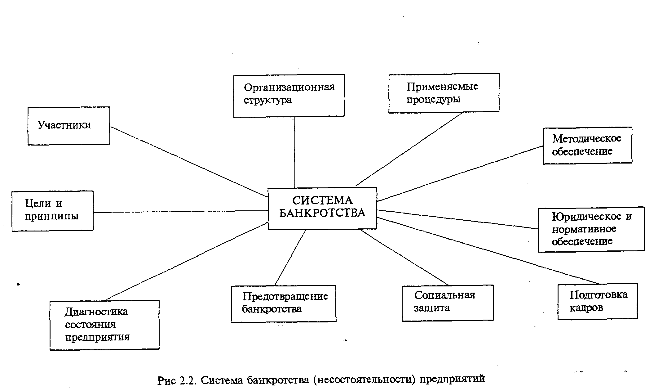 Рыночная экономика выработала определенную систему контроля, диагностики и, по возможности, защиты предприятий от полного краха, или систему банкротства. Ее структура отражена на рис 1.2.